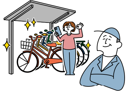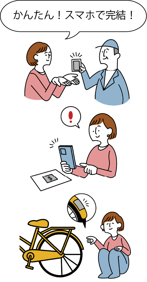 QR駐輪ステッカーを貼って設定するだけ。契約も更新も支払いもスマホひとつでできます。